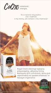 Royal Green CoQ10 dostarcza najlepiej przyswajalną i najbardziej aktywną formę koenzymu Q10, zwaną ubichinolem. Ubichinol jest bioaktywną formą koenzymu Q10, tą samą, która jest wytwarzana przez komórki ludzkie. Nie jest to więc utleniona forma CoQ10, ubichinon. Dla silniejszego efektu Royal Green połączył ubichinol z witaminą C.